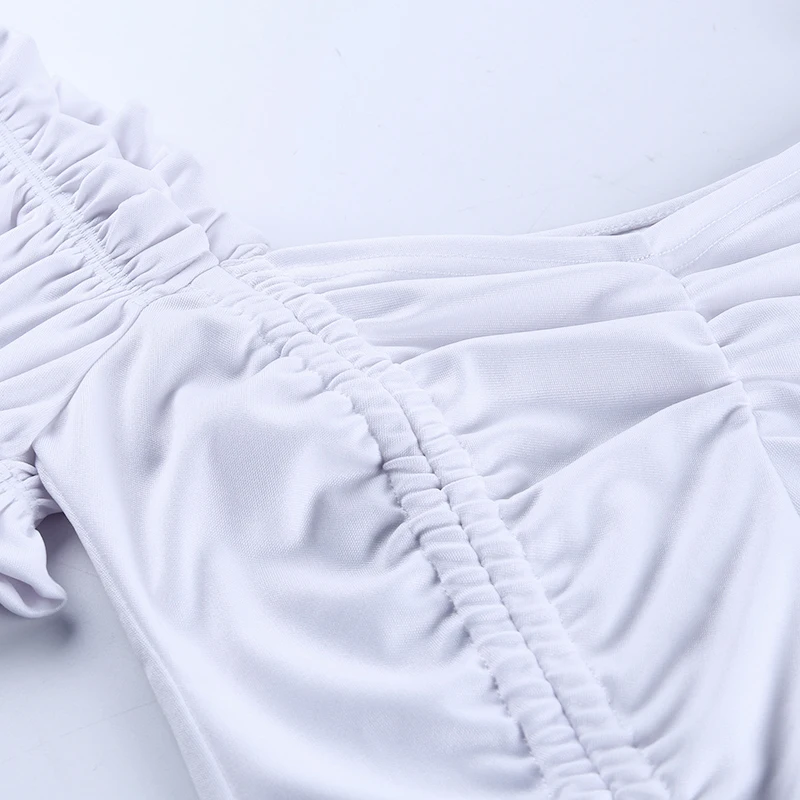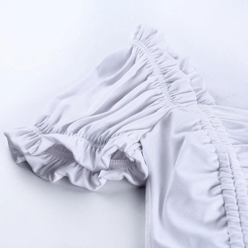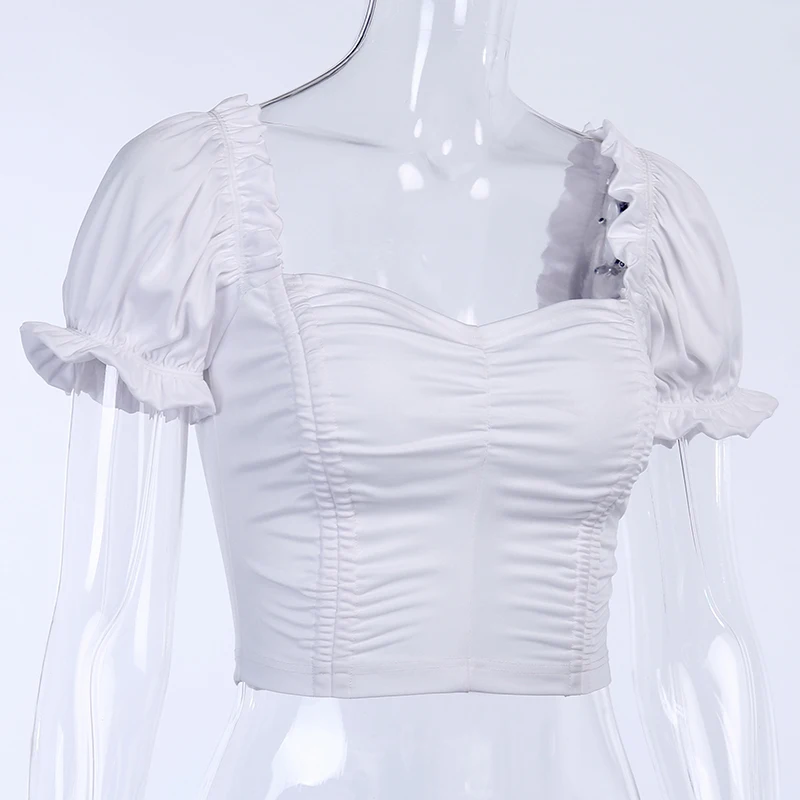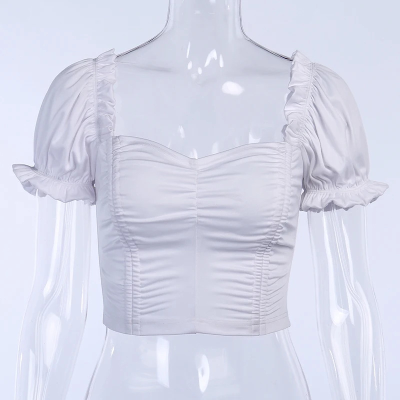 90S Cropped Shirts Ruched Square Collar Backless Ruffles Short Puff Sleeve