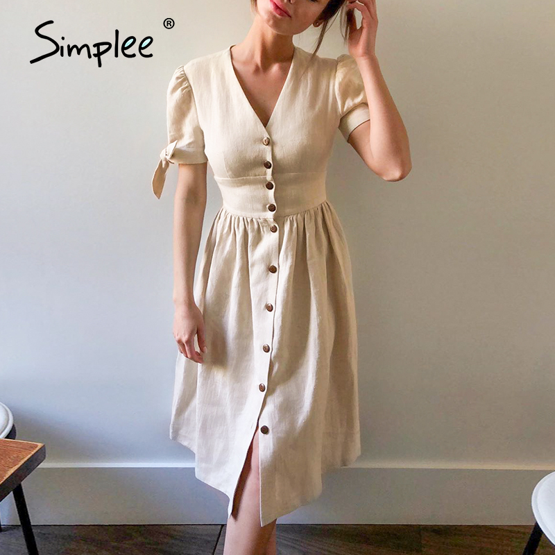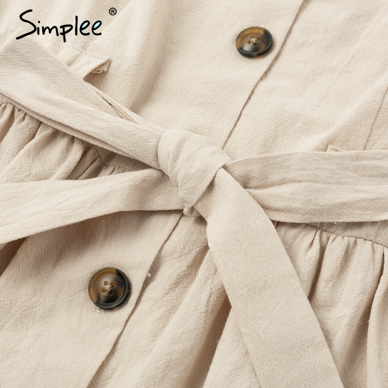 Cotton / Buttons / Sashes / Short Sleeve / Casual / Dress