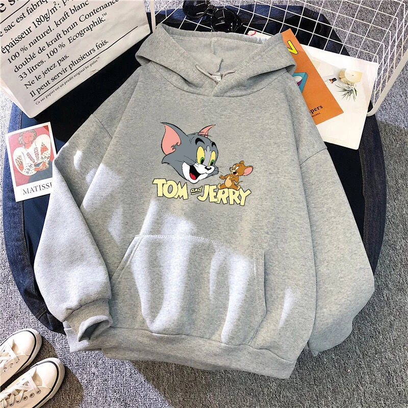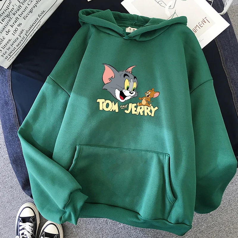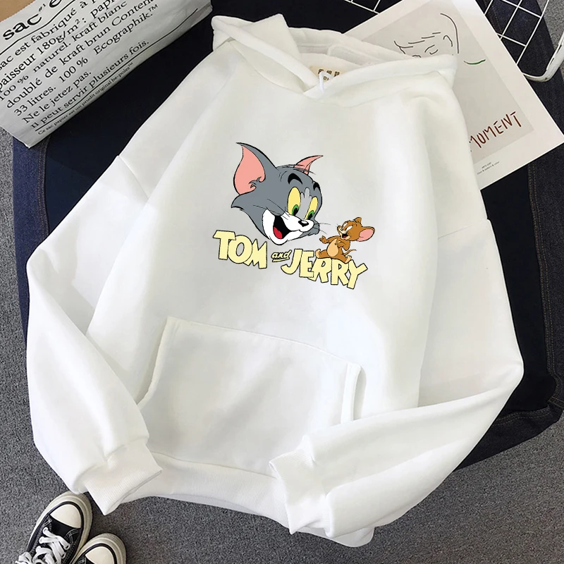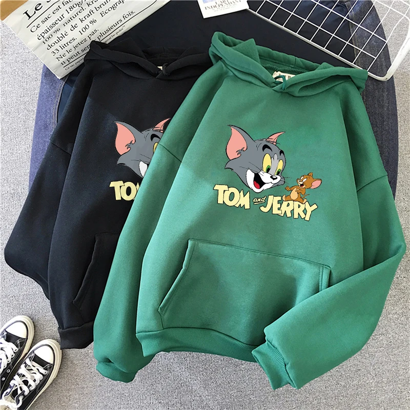 Cat Tom Mouse Jerry New Ulzzang Loose Casual Women Long Sleeve Cute Female Kawaii Print Winter Tops Hoodies Harajuku Hoodie
