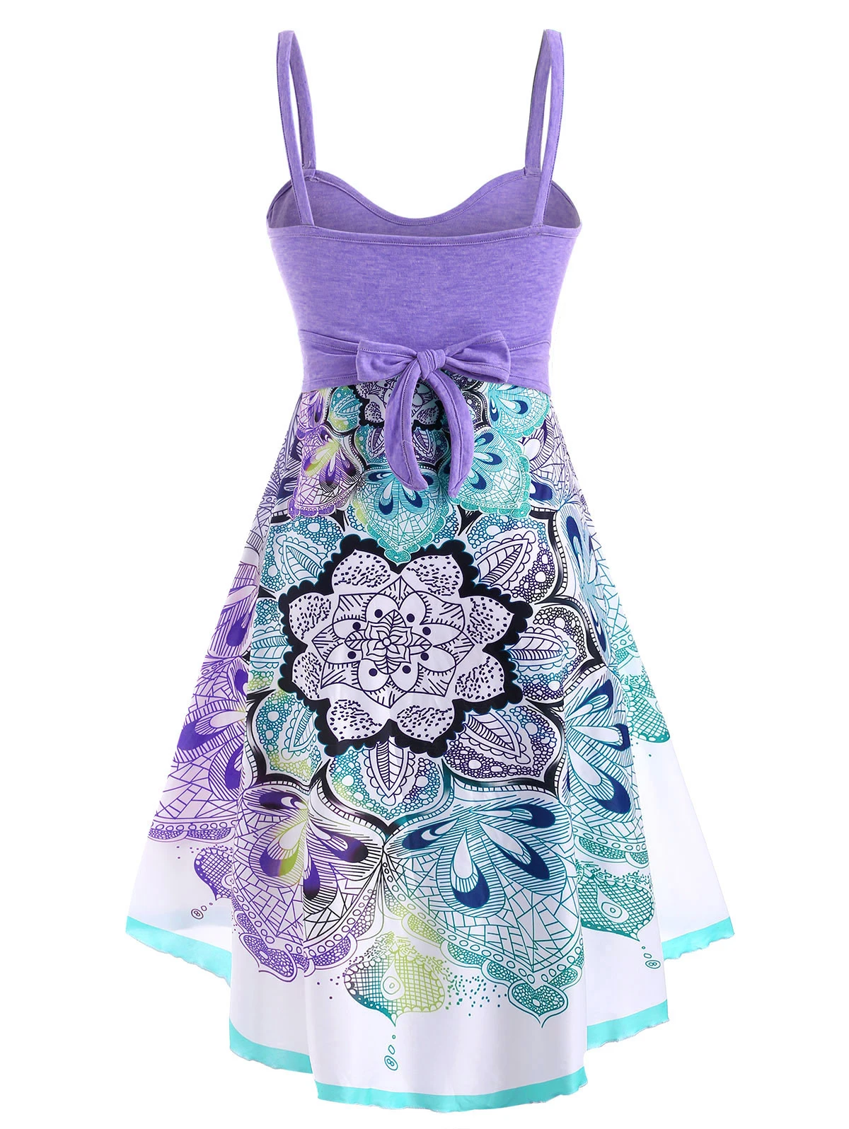 FREE SHIPPING Bohemian Dress Women Casual Flower Crossover Sleeveless Dress Spaghetti Strap OC0540