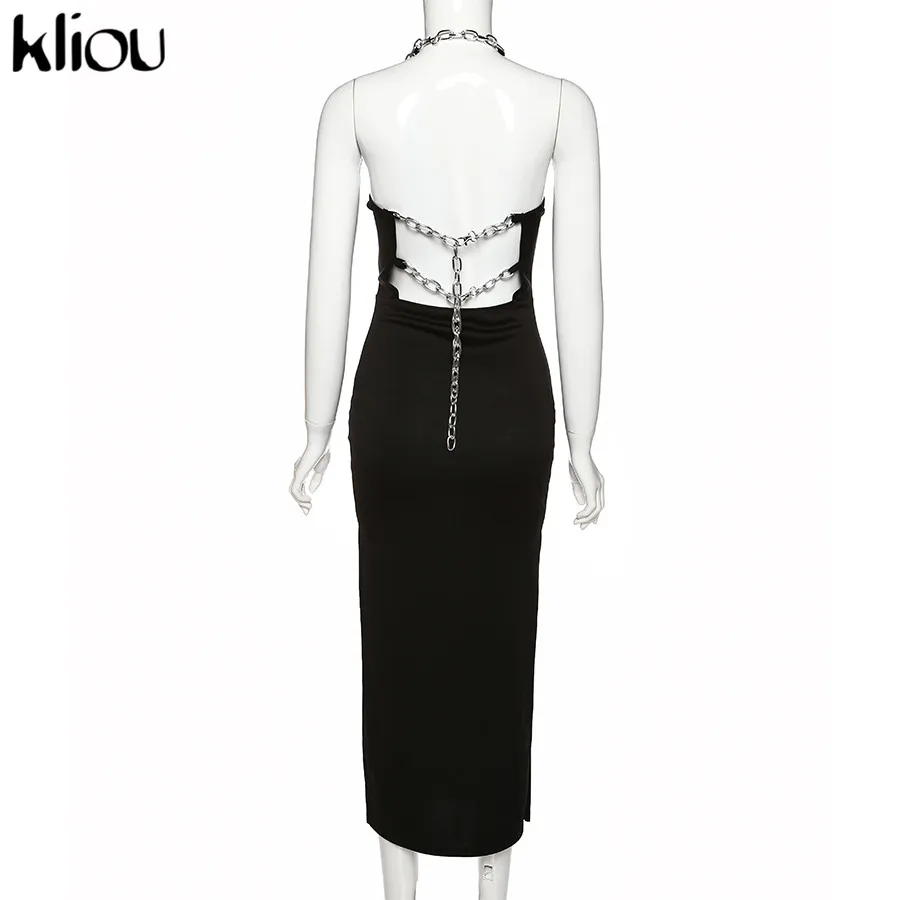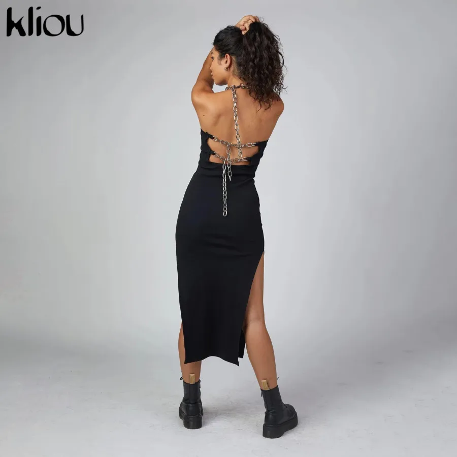 FREE SHIPPING Summer Backless Midi Dress Solid Party Outfit OC0198