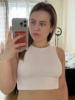This is my second white top. The fabric is synthetic, very pleasant, double, so it does not shine through. Short. Perfect style for me!