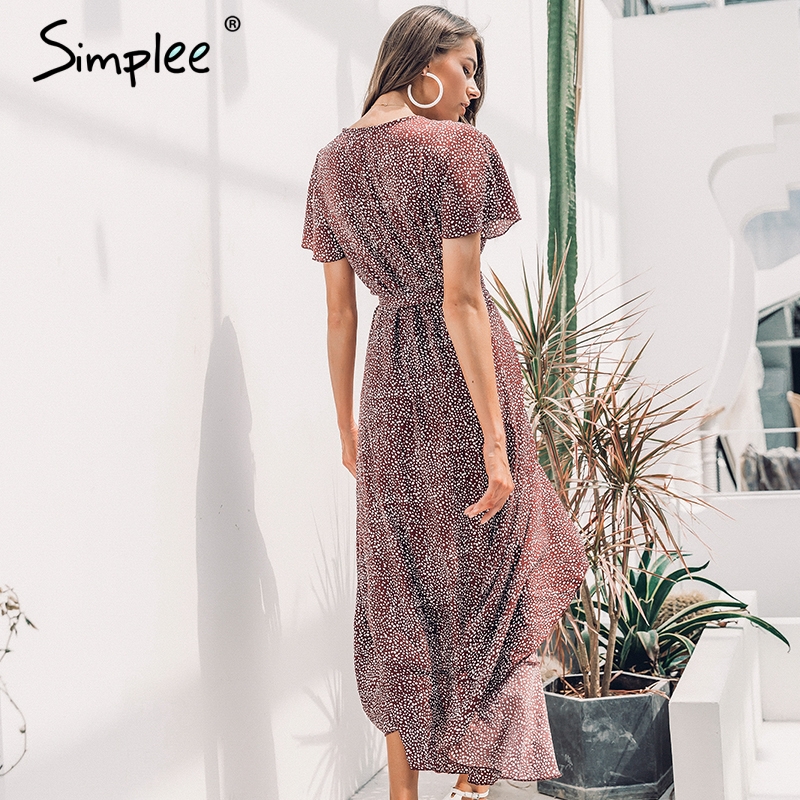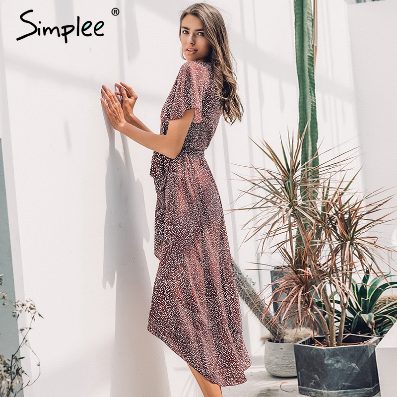 New Elegant Chiffon Dress Leopard Print Sashes Split Floral Latter Party Outfit Dresses O0009