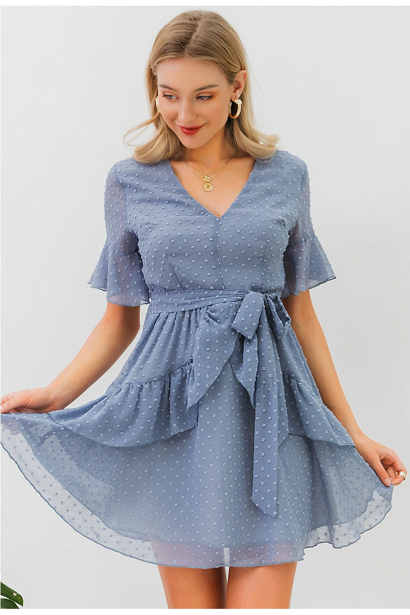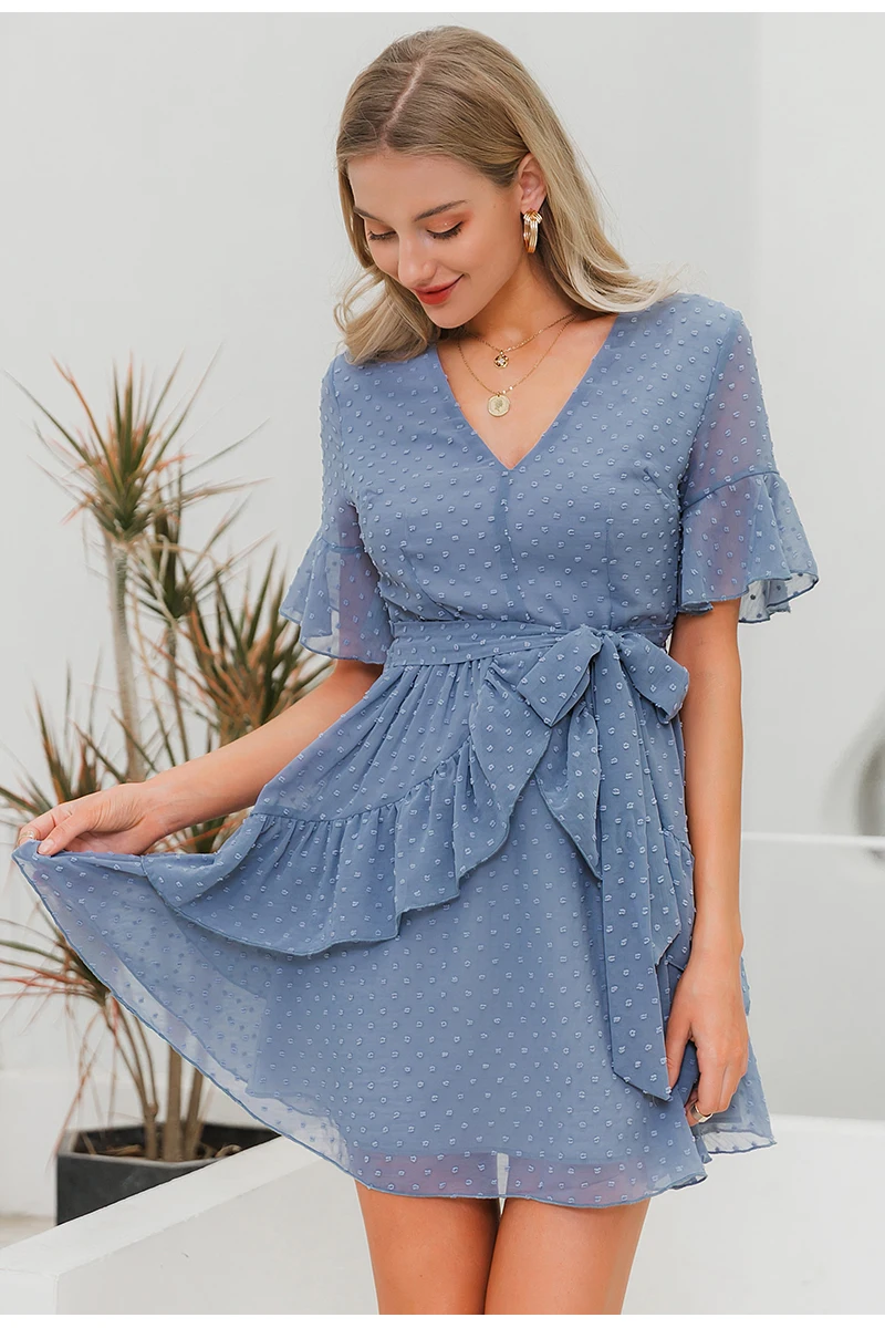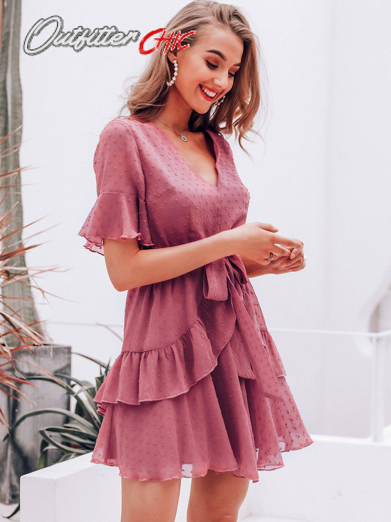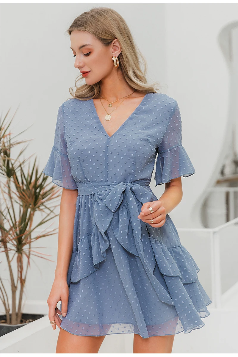 OUTFITTER CHIC Sexy Polka Dot Layer Ruffle Chiffon Short Summer Dress Style