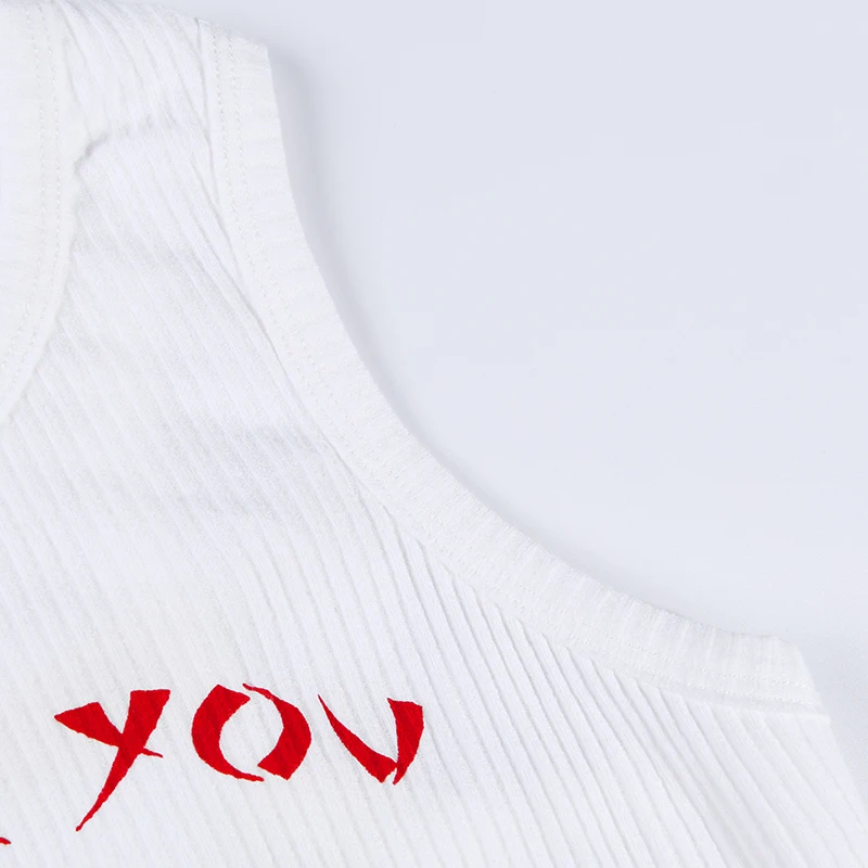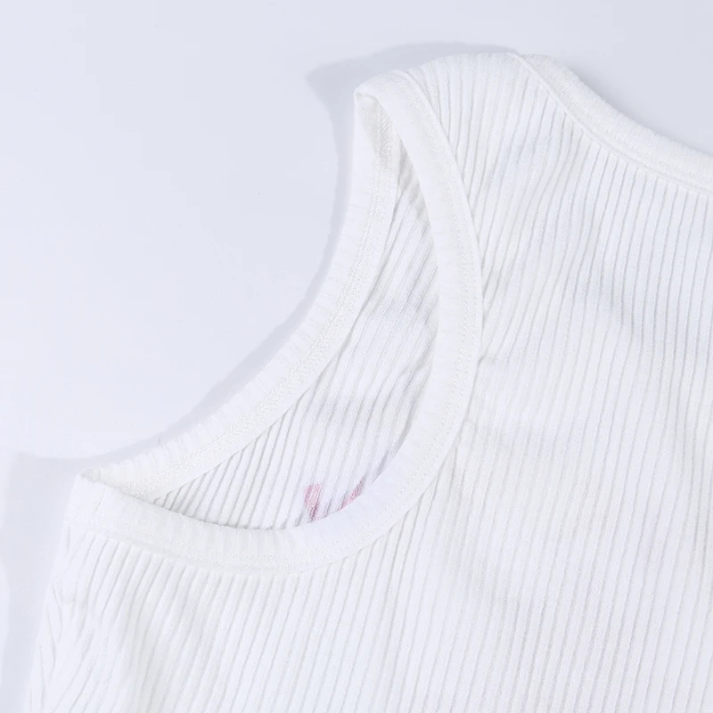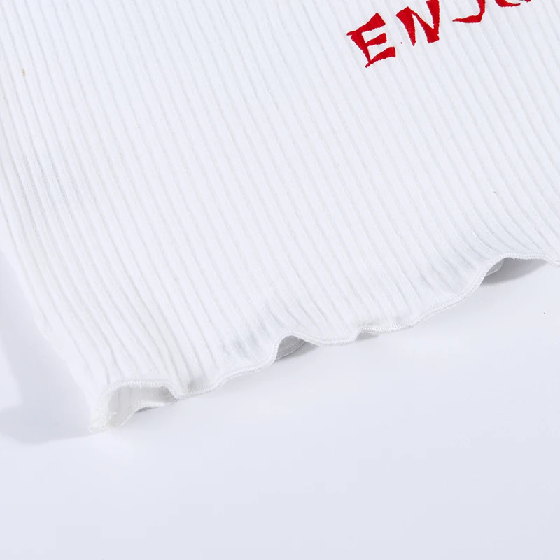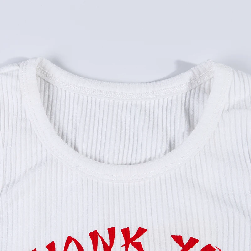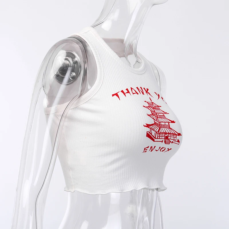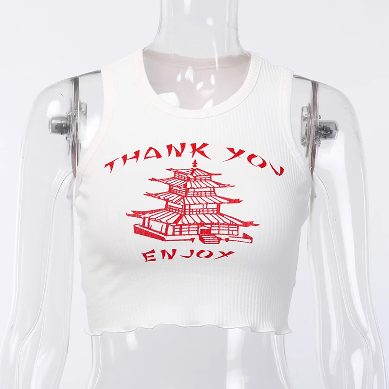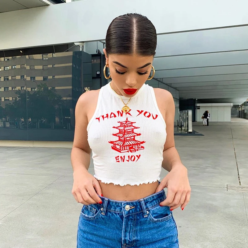 Thank You Enjoy Crop Top Pattern Print Ribbed Knitted Camis Sexy Hot Women Casual Streetwear Outfit