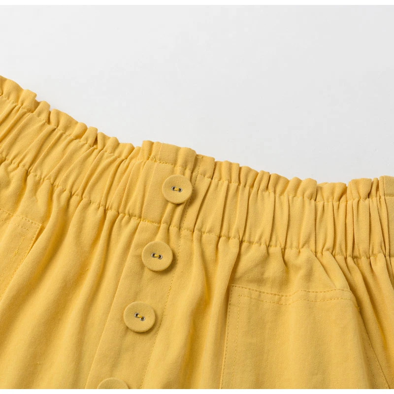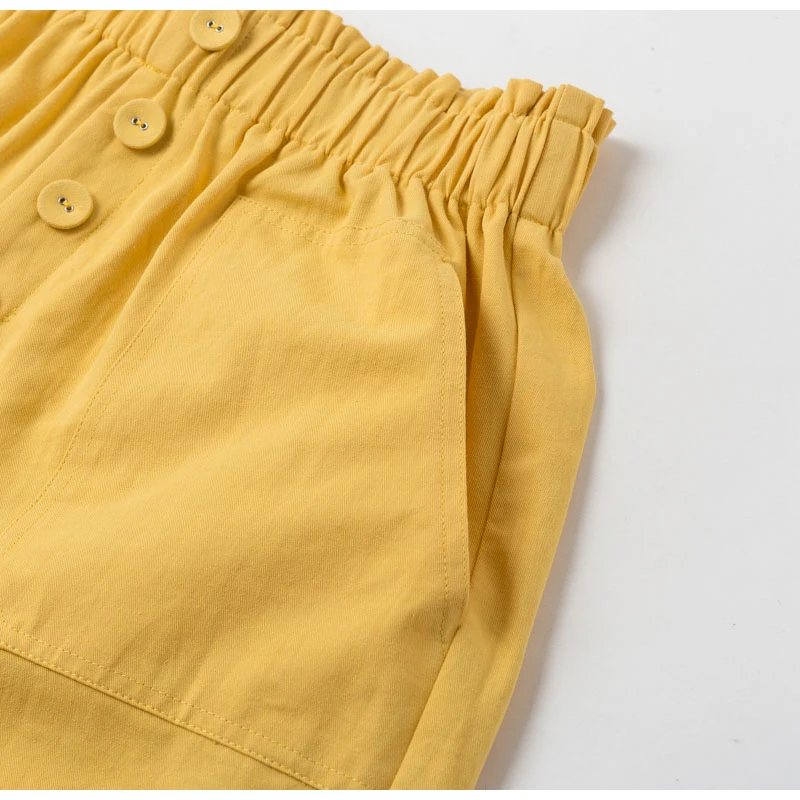 Yellow Crimping Streetwear Pockets Shorts Pants OC0147